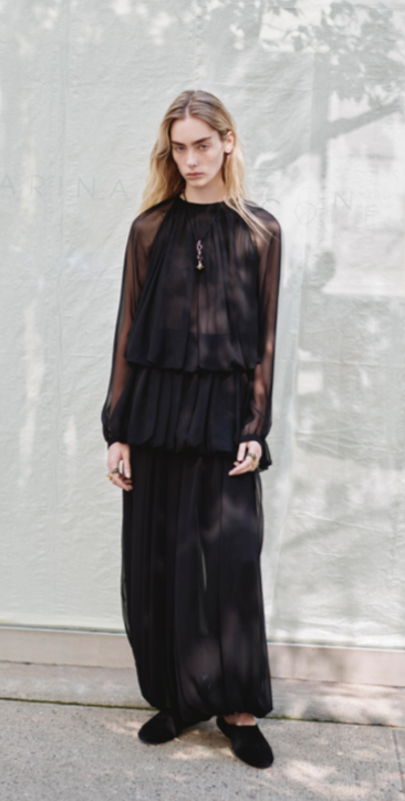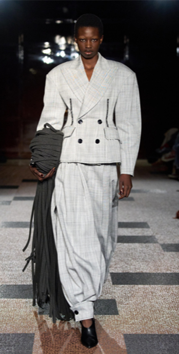 Los harem trousers con BubbleHems, introducidos en S/S 25, mantienen continuidad hacia S/S 26. Se integran en narrativas bohemias, ampliando su presencia en propuestas minimalistas gracias a detalles plisados.
